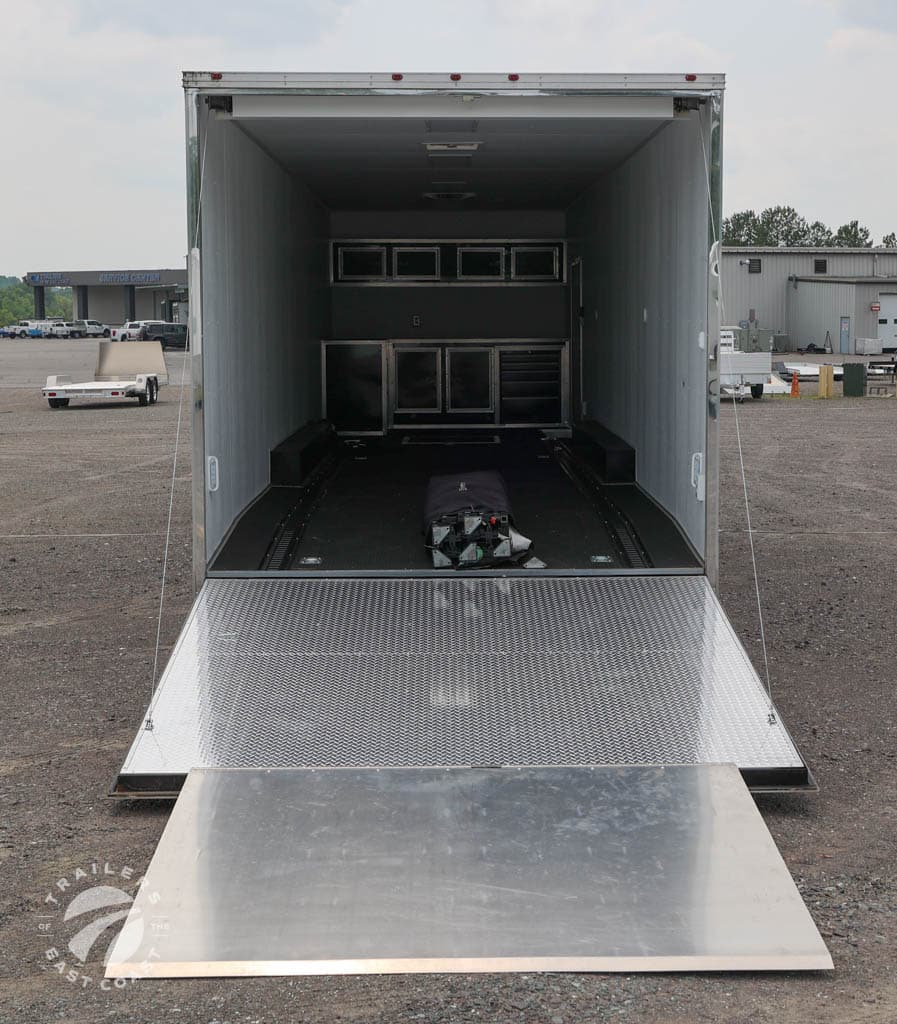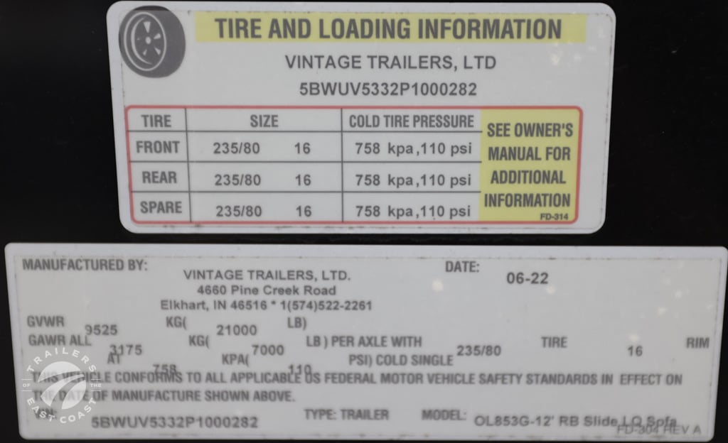 Axle Type: Torsion Axle Quantity: 3 Axle Weight Capacity: 7,000 lbs. Escape Door: No Exterior Color: Black Exterior Height: Exterior Width: Frame Type: GVWR: Hitch Ball Size: King Pin Interior: Finished Interior Height: 7'6" Interior Width: Lift Capacity: Overall Length: Payload Capacity: Ramp Capacity: Rear Opening Height: Rear Opening Width: Tire Age: Tire Size: Trailer Weight: |