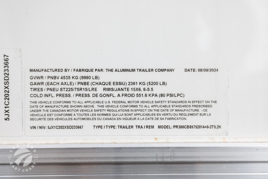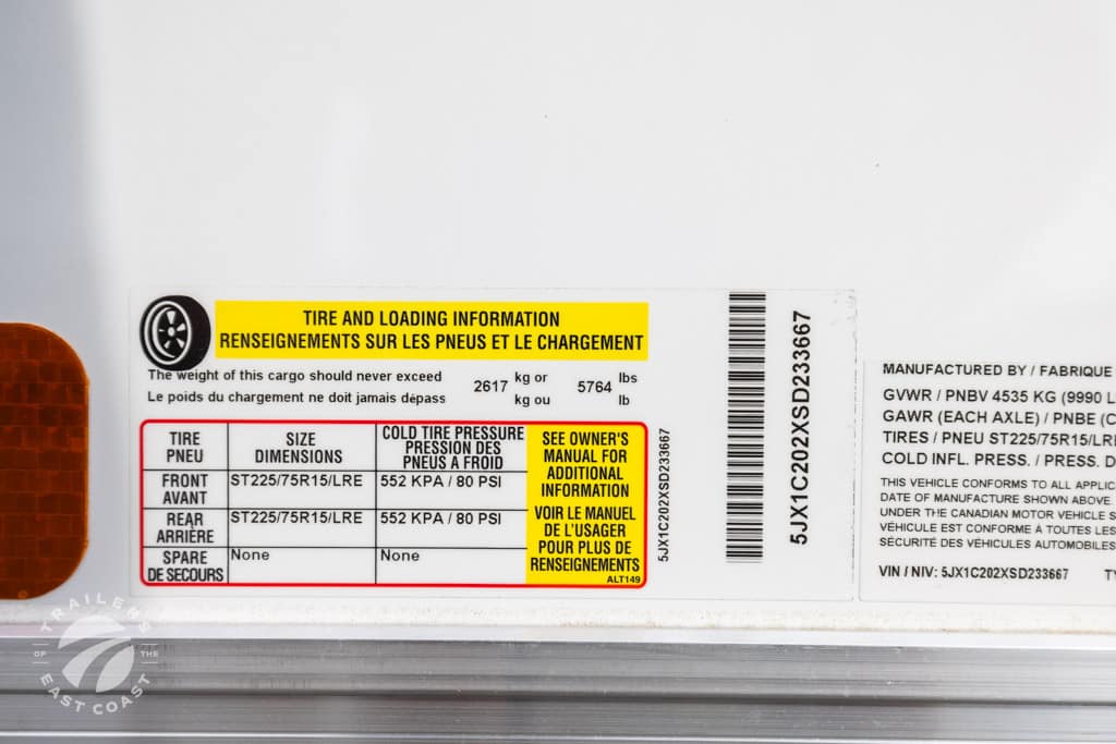 Axle Type: Torsion Axle Quantity: 2 Axle Weight Capacity: 5,200 lb Exterior Color: Polar White Exterior Height: Exterior Width: Frame Type: Aluminum GVWR: 9,990 lbs Interior: Finished Interior Height: 7'5" Interior Width: 8'6" Overall Length: Tire Age: New Tire Size: 225/75R15 Trailer Weight: 5,038 lbs |