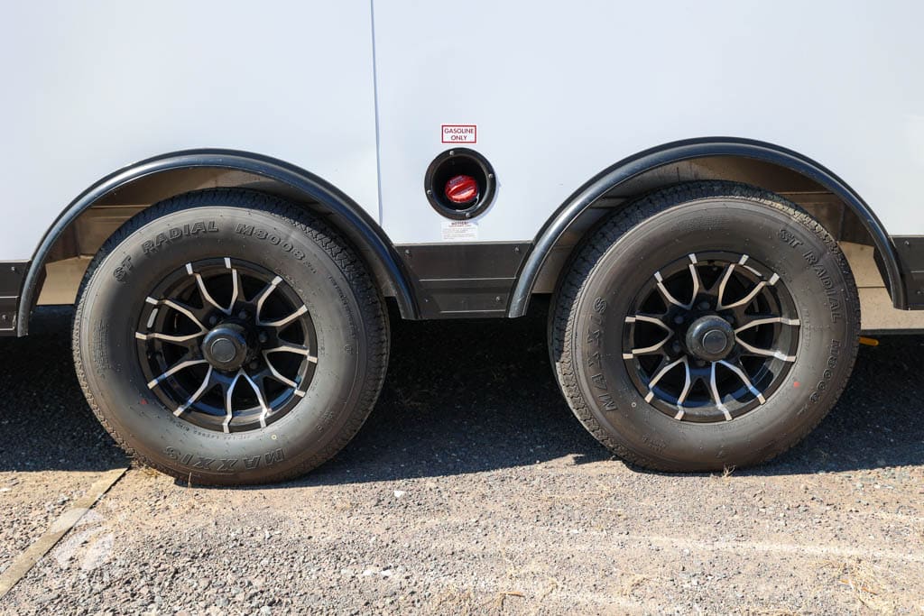 Awnings: 2 Axle Type: Torsion Axle Quantity: 2 Axle Weight Capacity: 5,200 lbs. Black Capacity: 45 Gallons Exterior Color: White Exterior Height: 11'3" (Includes A/C Unit) Exterior Width: Floorplan: 2412 Frame Type: Aluminum Fresh Capacity: 100 Gallons Front Bedroom: No Fuel Capacity: Generator: Yes Gray Capacity: 45 Gallons GVWR: 9,990 lbs. Interior Color: Cashmere Gray Interior Height: 7'6" Interior Width: Overall Length: Payload Capacity: 2,617 lbs. Ramp Capacity: Ramp Patio: No Rear Opening Height: 90" Rear Opening Width: 96" Ramp Patio: No Sleeping Capacity: Solar Panels: Yes Tire Age: Tire Size: 225/75R15E Trailer Weight: 7,373 lbs. |