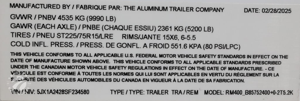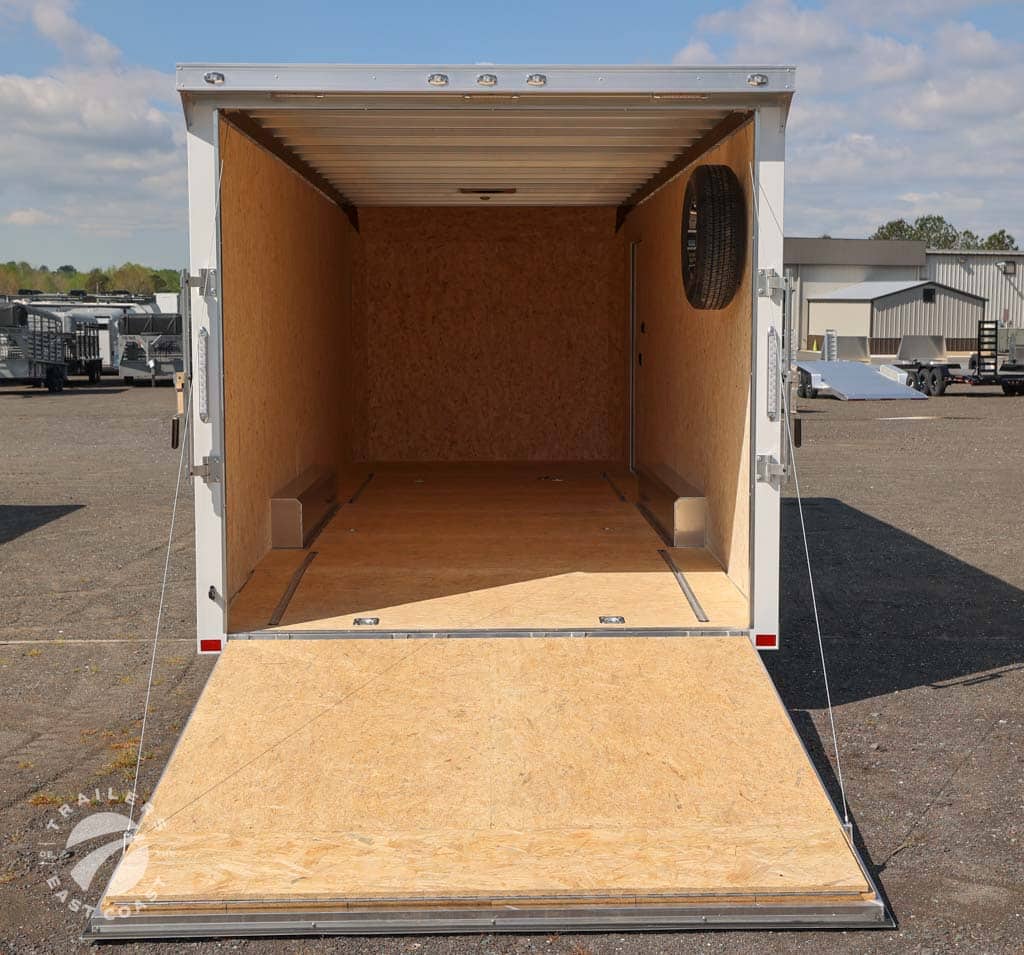 Axle Type: Torsion Axle Quantity: 2 Axle Weight Capacity: 5,200 lbs. Escape Door: No Exterior Color: Polar White Exterior Height: Exterior Width: Frame Type: Aluminum GVWR: 9,990 lbs. Hitch Ball Size: Interior: Unfinished Interior Height: 90" Interior Width: 97" Lift Capacity: Overall Length: 29'6" Payload Capacity: Ramp Capacity: Rear Opening Height: 89" Rear Opening Width: 90" Tire Age: Tire Size: ST225-75R15 LRE Trailer Weight: 3,401 lbs. |
