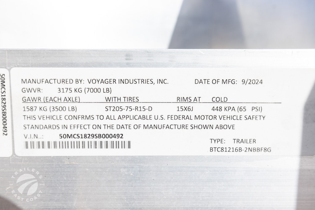 Axle Type: Torsion Axle Weight Capacity: 3,500 lbs. Exterior Color: Exterior Height: Exterior Width: Frame Type: Aluminum GVWR: 7,000 lbs. Interior Width: 81" Lift Capacity: Overall Length: 267" Payload Capacity: Tire Age: Tire Size: ST205-75-R15-C Trailer Weight: 1,400 lbs. |