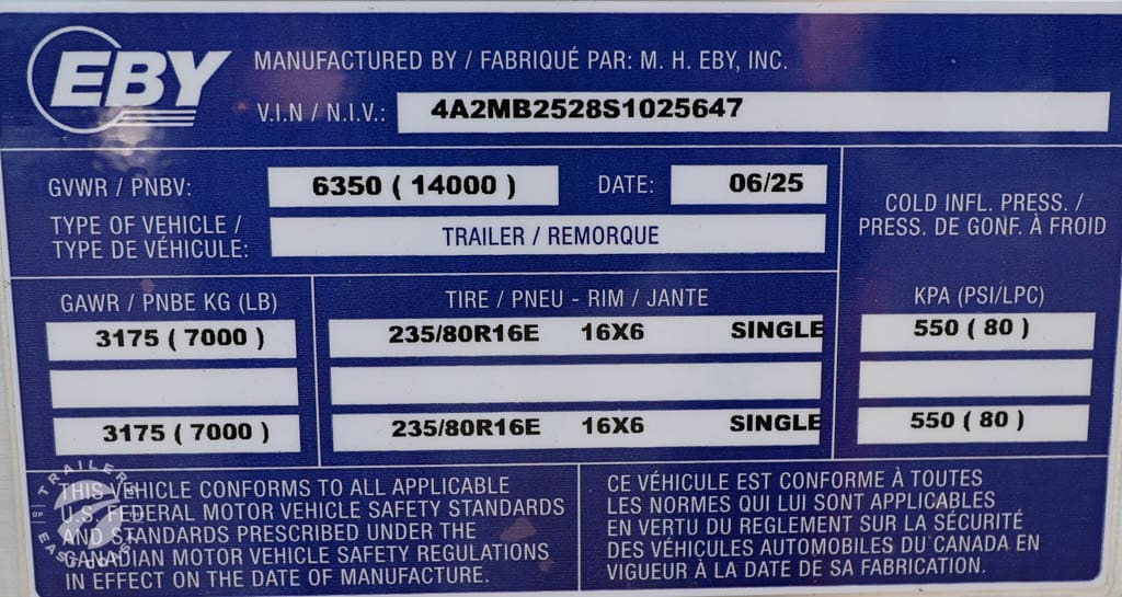 Axle Type: Axle Quantity: Axle Weight Capacity: Exterior Color: Frame Type: Aluminum GVWR: 14,000 lbs. Payload Capacity: Ramp Capacity: Tire Age: Tire Size: ST235/80R16 LRE Trailer Weight: 3,200 lbs. |