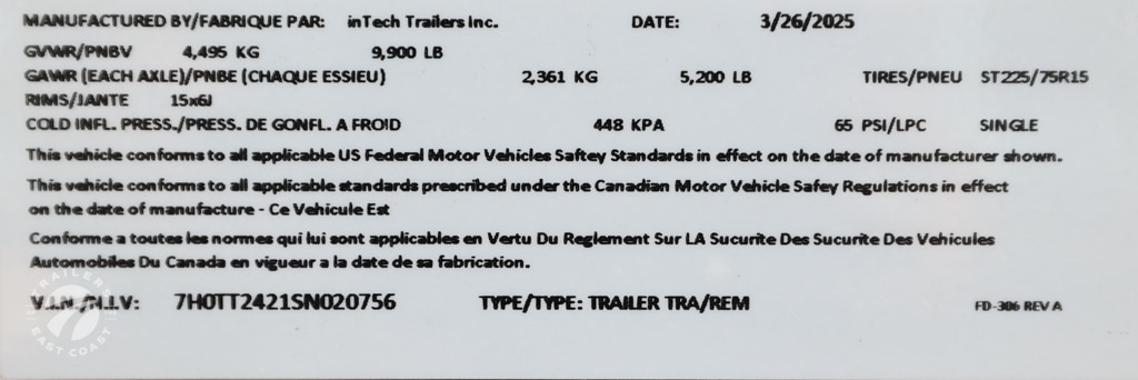 Axle Type: Dexter Torsion Axle Quantity: 2 Axle Weight Capacity: 5,200 lbs. Escape Door: Yes Exterior Color: Sportsman Grey Exterior Height: Exterior Width: Frame Type: Aluminum GVWR: 9,900 lbs. Hitch Ball Size: 2-5/16" Interior: Unfinished Interior Height: Interior Width: Lift Capacity: Overall Length: Payload Capacity: Ramp Capacity: Rear Opening Height: Rear Opening Width: Tire Age: Tire Size: ST225/75R15 Trailer Weight: 4,020 lbs. |