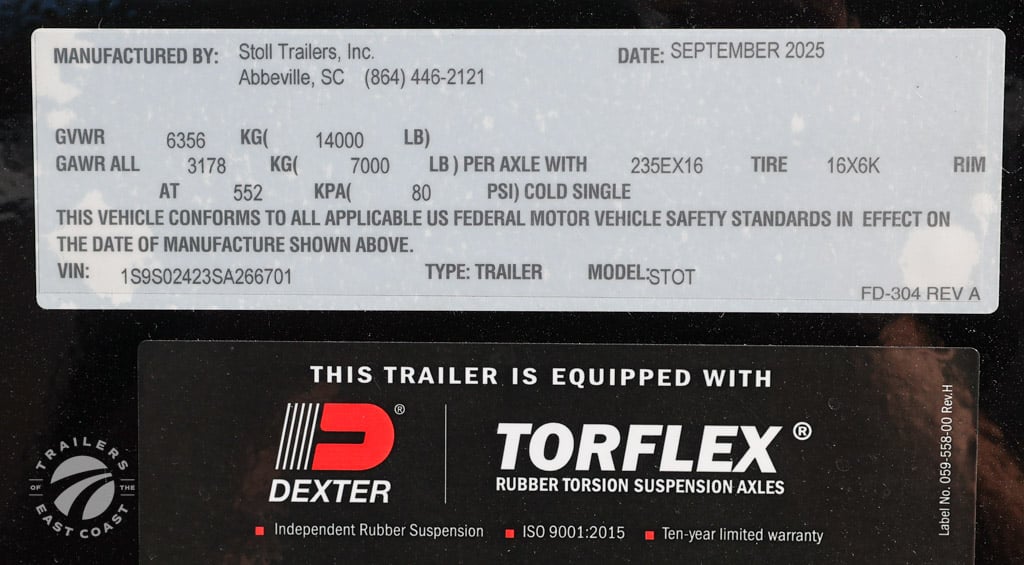 (2) 7,000lb. Tor Flex Axles with Electric Brakes