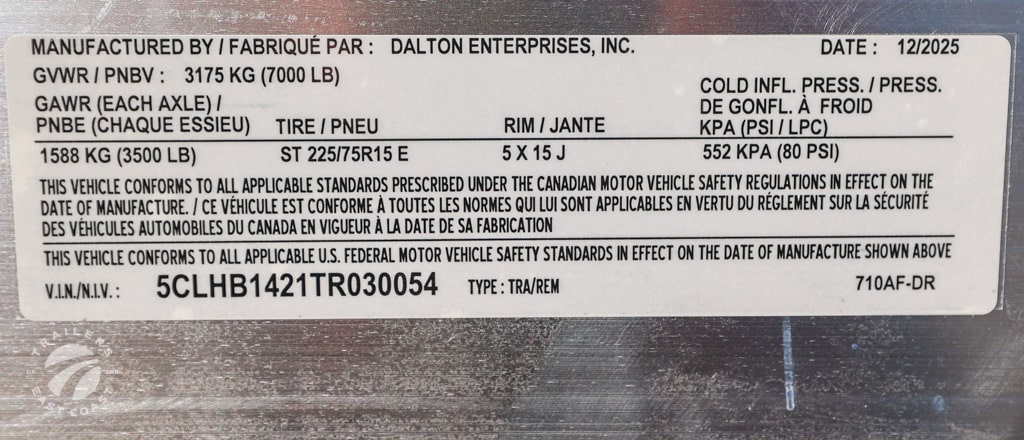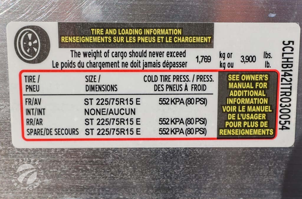 Axle Type: Torsion Axle Quantity: 2 Axle Weight Capacity: 3,500 lbs. Box Length: Exterior Color: White Exterior Height: Exterior Width: Floorplan: Frame Type: Aluminum GVWR: 7,000 lbs. Midtack: No Payload Capacity: 3,900 lbs. Tire Age: Tire Size: Trailer Weight: 3,100 lbs. |