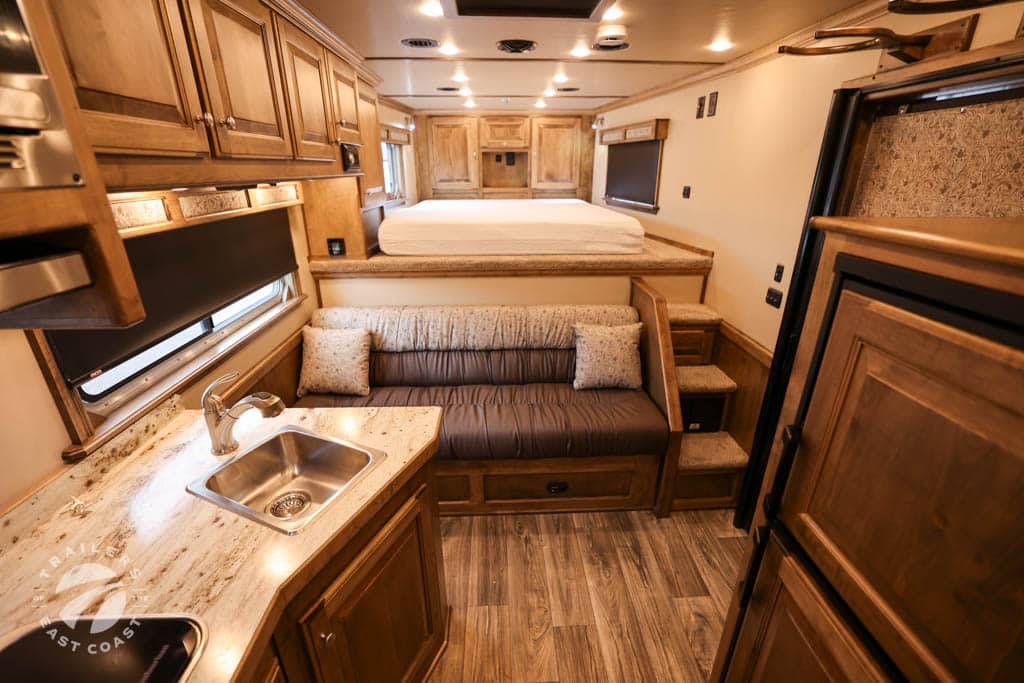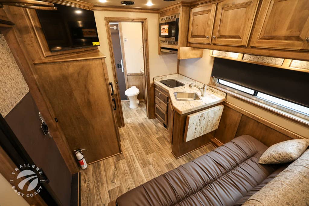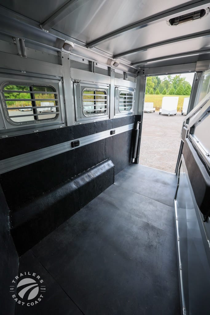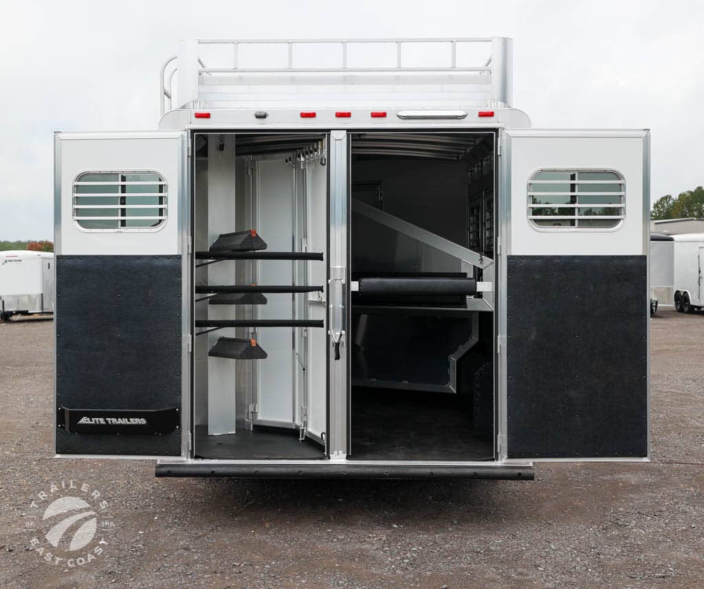 Ideal for anyone looking for a premium 3-horse living quarter trailer for sale, this Elite Mustang horse trailer delivers comfort for the owners and safe, well-ventilated transport for your horses. Contact Trailers of the East Coast today for pricing and availability!