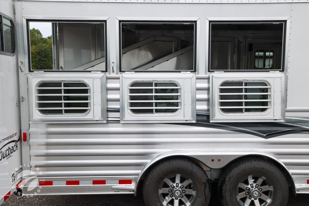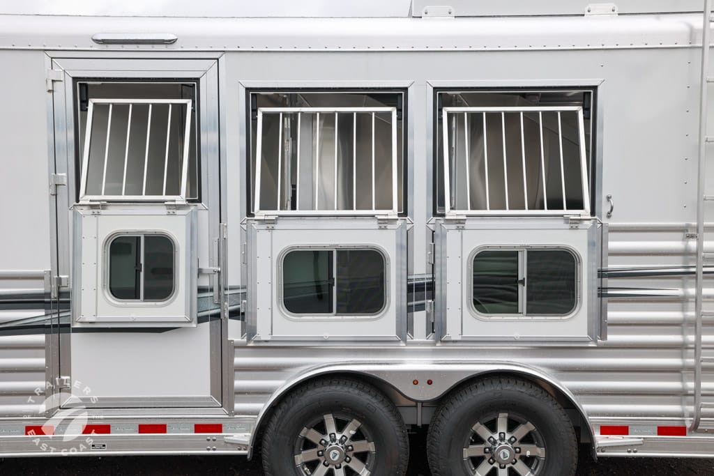 3-horse slant load design with drop-down windows on head & hip sides for ventilation
