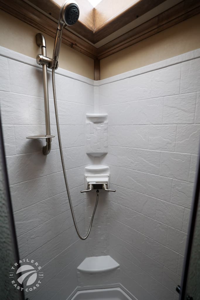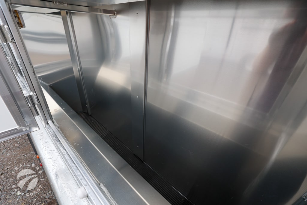 Spacious 10.8 ft living quarters with full kitchen, bath, wardrobe closet, sofa and HVAC (A/C & heat)