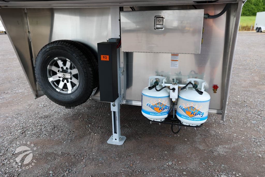 Hydraulic jack, aluminum wheels, load lighting & brush tray for convenience
