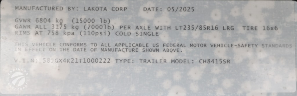 Awnings: 1 Axle Type: Axle Quantity: 2 Axle Weight Capacity: 8,000 lbs. Box Length: Dressing Room Size: Exterior Color: Matte Black Metallic Floorplan: CH8415SR Frame Type: Aluminum HVAC: No Interior Color: Interior Height: Interior Width: 8' Living Quarters Length: 15' Load Type: Slant Midtack: No Number of Horses: 4 Payload Capacity: Platinum Package: No Slideouts: 1 Tire Age: Tire Size: Trailer Weight: 11,750 lbs. |