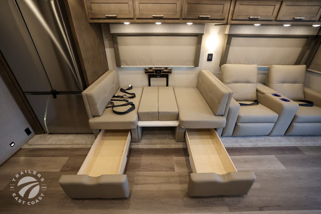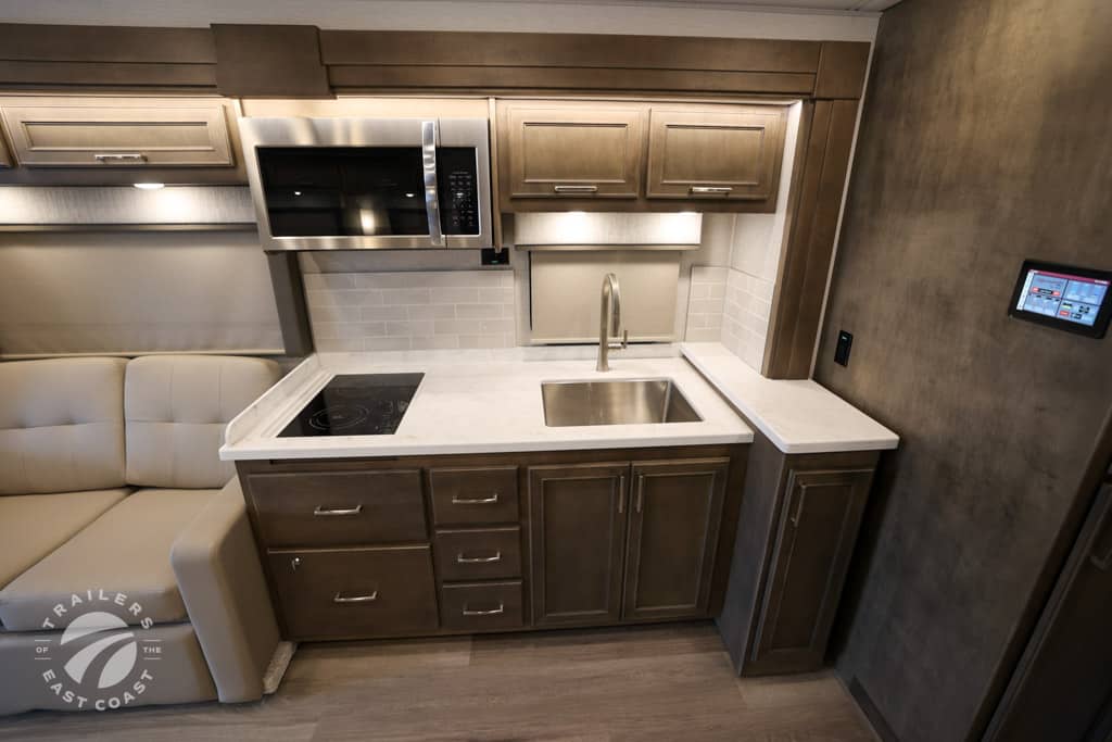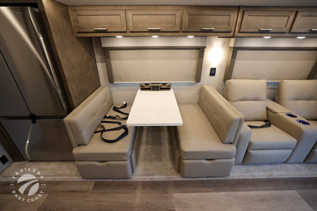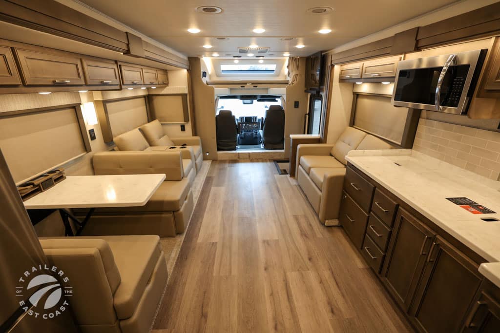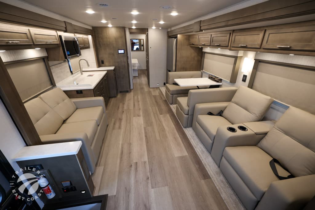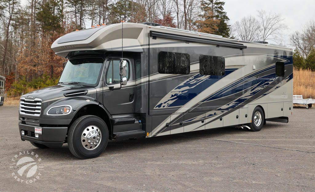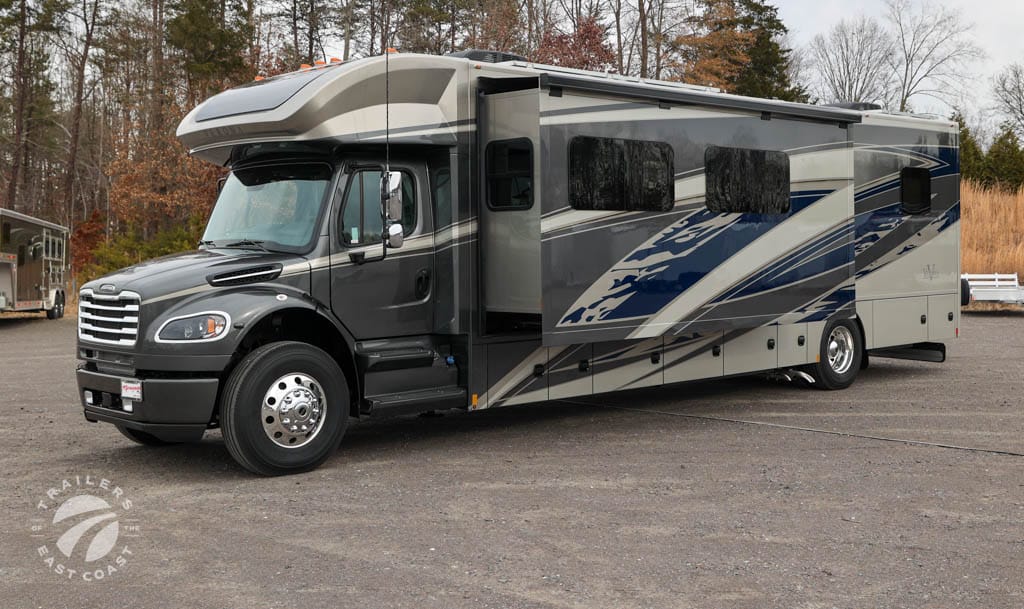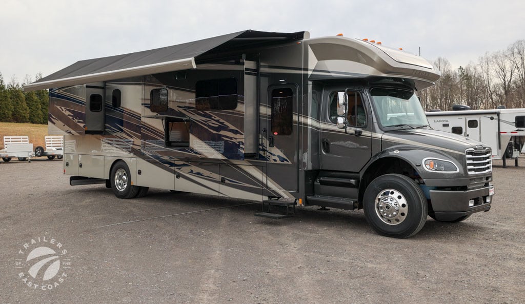 Awnings: 1 Axle Quantity: Black Capacity: 75 Gallons Chassis: Freightliner M2-106 Engine: Cummins L9 Exterior Color: Surge Exterior Height: Floorplan: 40VTS Fresh Capacity: 150 Gallons Fuel Capacity: 100 Gallons Fuel Type: Diesel Gray Capacity: 75 Gallons Generator Size: 8kW Onan Quiet Diesel GVWR: 37,600 lbs. Horsepower: 360HP Interior Color: Interior Height: 84" Interior Width: Motorhome Class: Class C Off-Grid Capable: Yes Onboard Carrying Capacity Overall Length: 39'10" Sleeping Capacity: Slideouts: 3 Solar Panels: Yes Tire Age: Tire Size: Torque: 1,150 lb./ft. Towing Capacity: Transmission: Allison 3200TRV with Safety Assurance Pkg. |