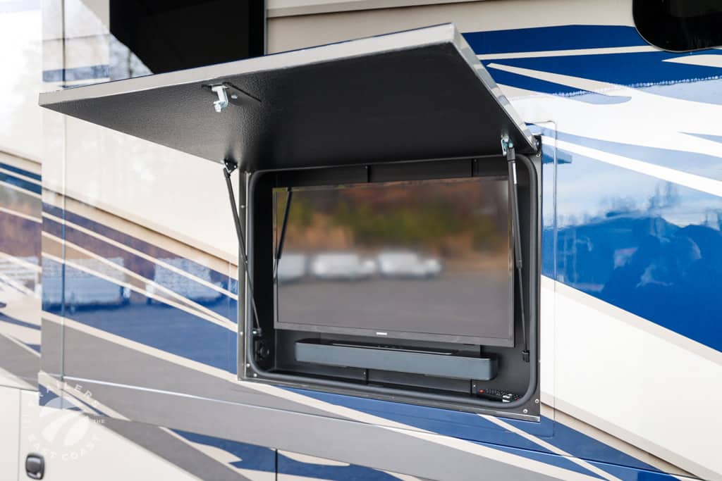 Outside Entertainment Center: 32″ LED TV with Soundbar on Extending/Swivel Arm