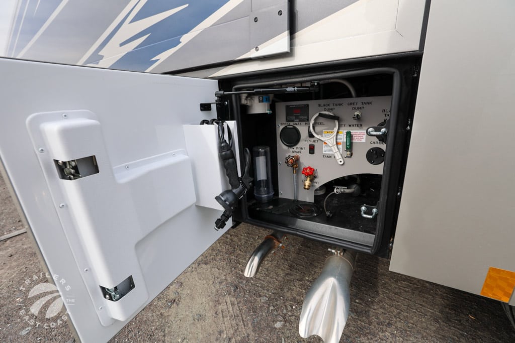 Side Swing Baggage Doors with Strut Assist – Black Handles