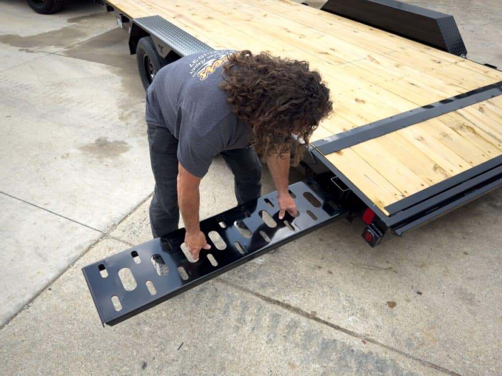 Timpte’s open car trailers have all the features that our customers rave about. The all-aluminum construction is high-quality, durable and easier to pull, improving tow vehicle gas mileage. The EZ-Load powered deck system is Timpte’s unique suspension system that enables the user to raise and lower the equipment trailer by using a remote transmitter or switch located at the toolbox storage system. This system allows for an impressive 4-degree approach angle for loading vehicles with minimal ground clearance.