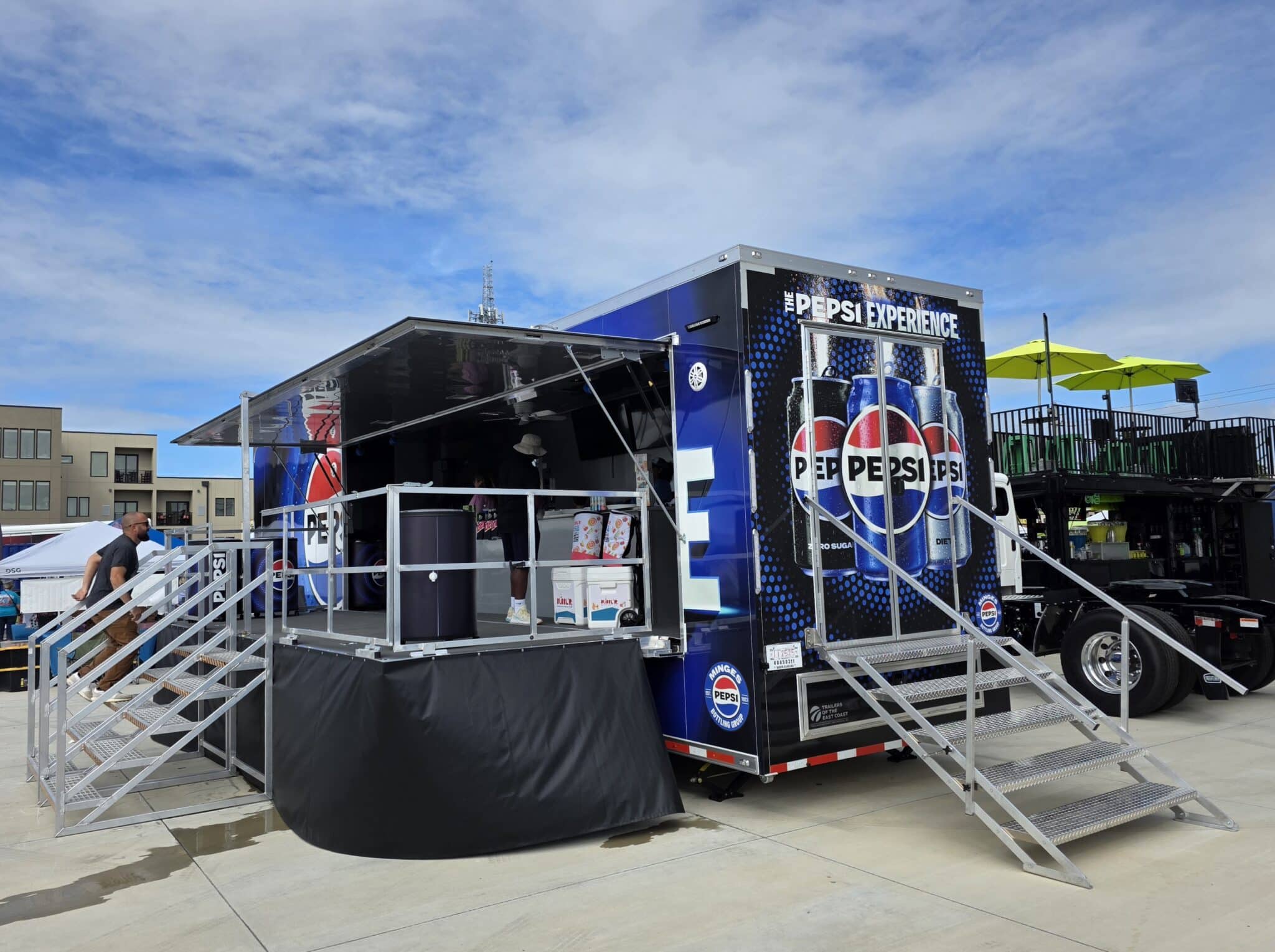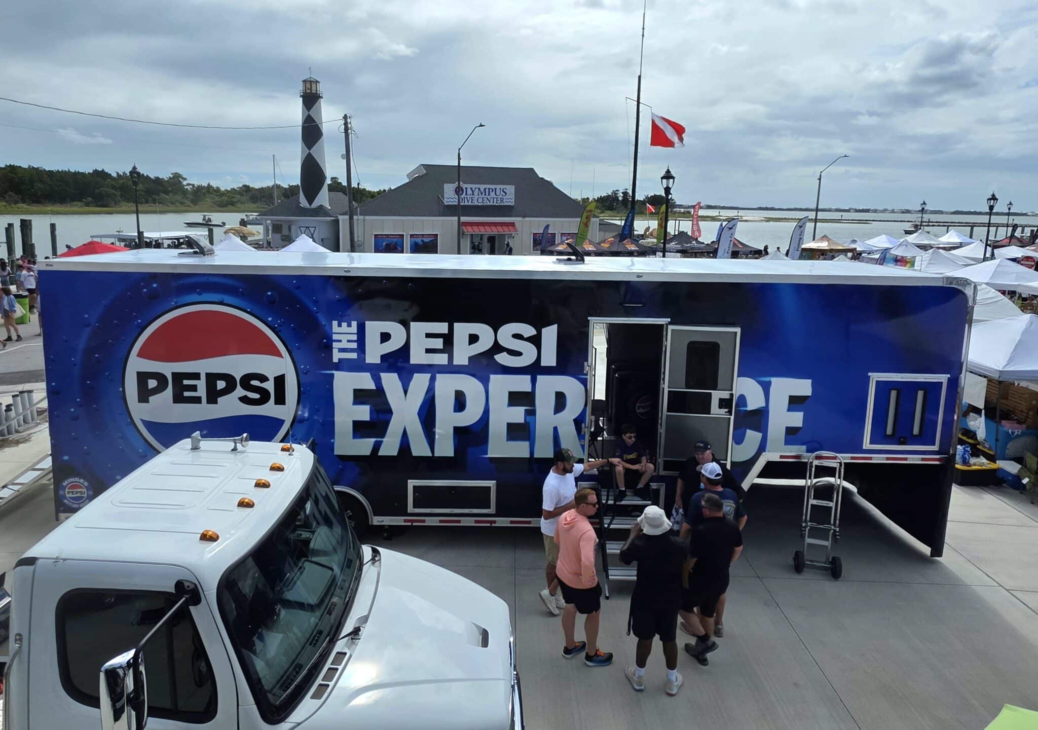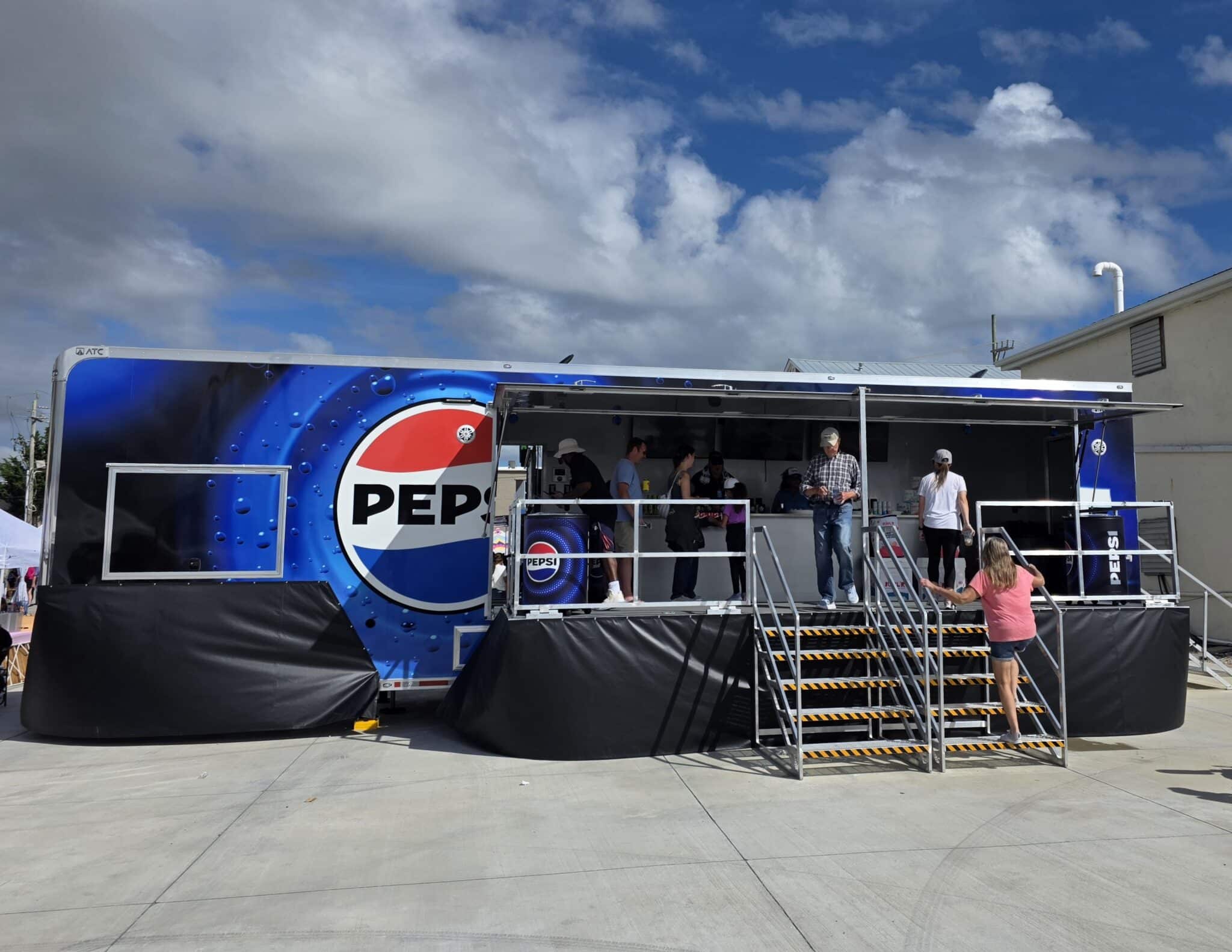 We worked with Minges Bottling Group/Pepsi to design this custom 8.5’ X 38’ ATC PRO 300S Stage/Display Trailer. It will serve as a mobile showroom for Pepsi product samplings at events across North Carolina.