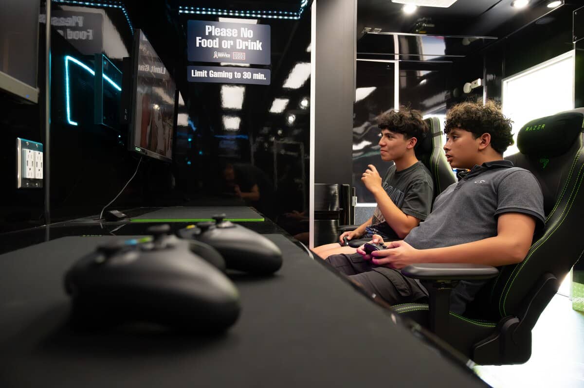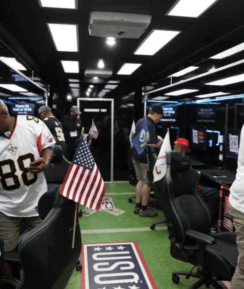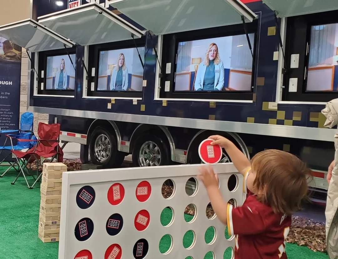 We worked with the United Service Organization to design this 8.5’ x 35’ ATC Pro 300C Gaming Trailer. This mobile gaming trailer provides Airmen & their families an opportunity to play video games and virtual reality. The trailer creates a perfect outlet for hardworking servicemembers and their families to do something fun together. Our customer, Matthew’s Specialty, did all the upfits to this awesome trailer.