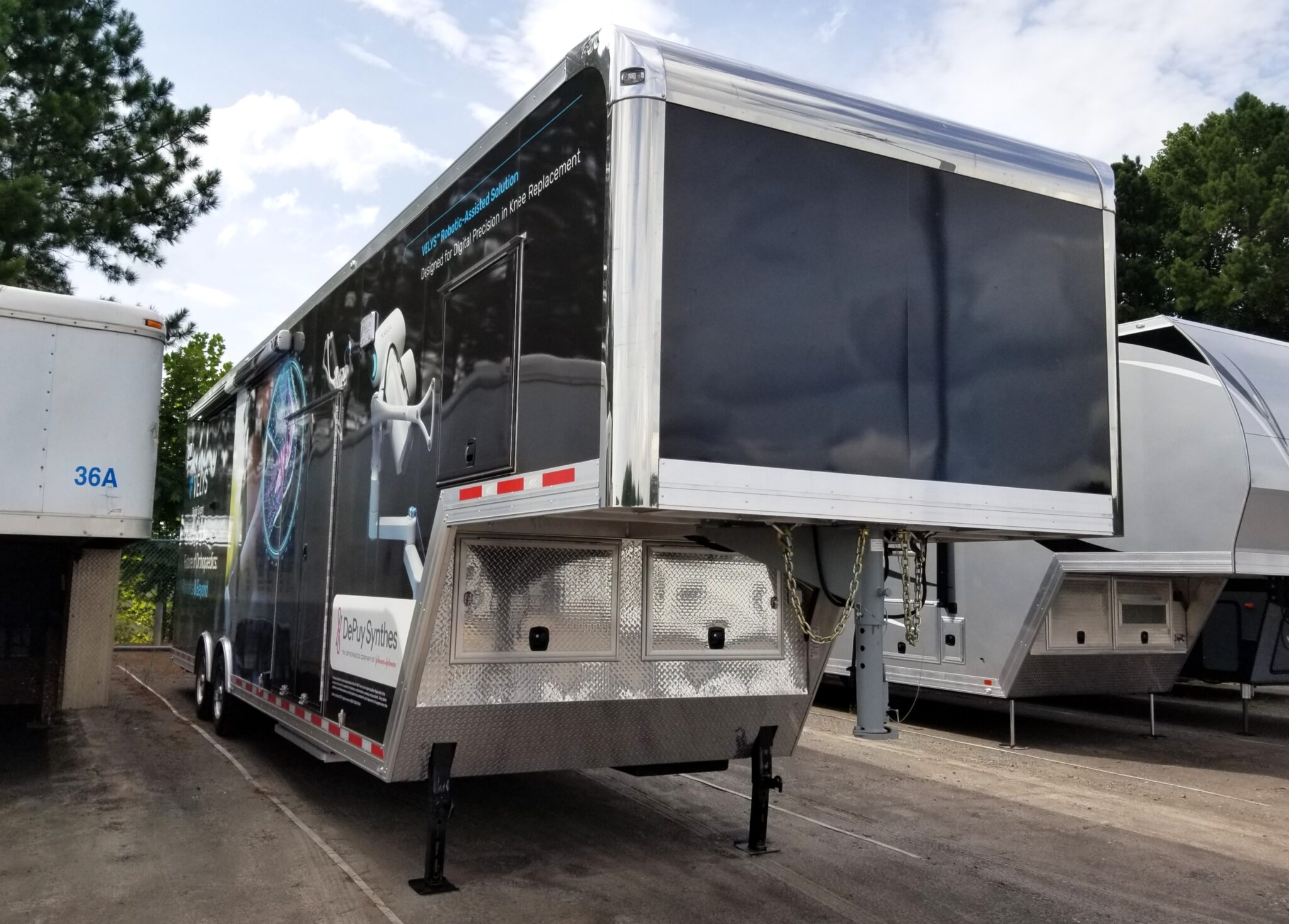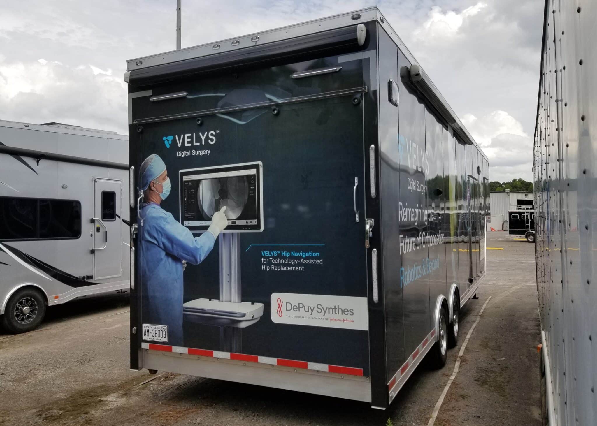 We worked with Velys Digital Surgery to design this 8.5' x 37' ATC Pro 300G Mobile Knee Replacement Lab trailer designed for digital precision in knee replacement.