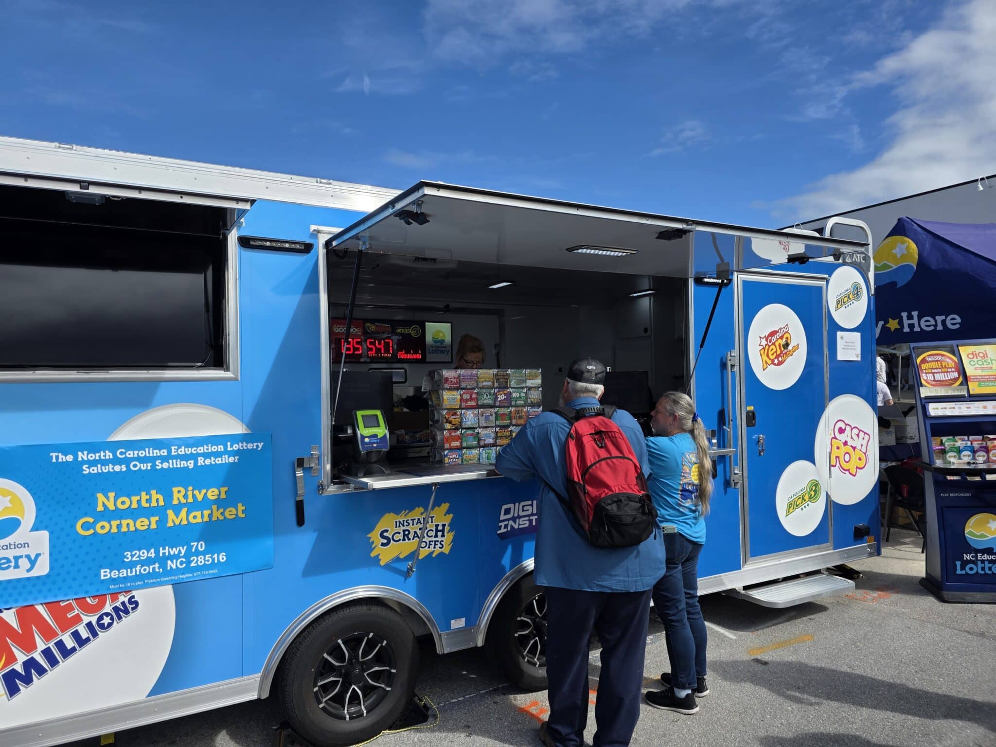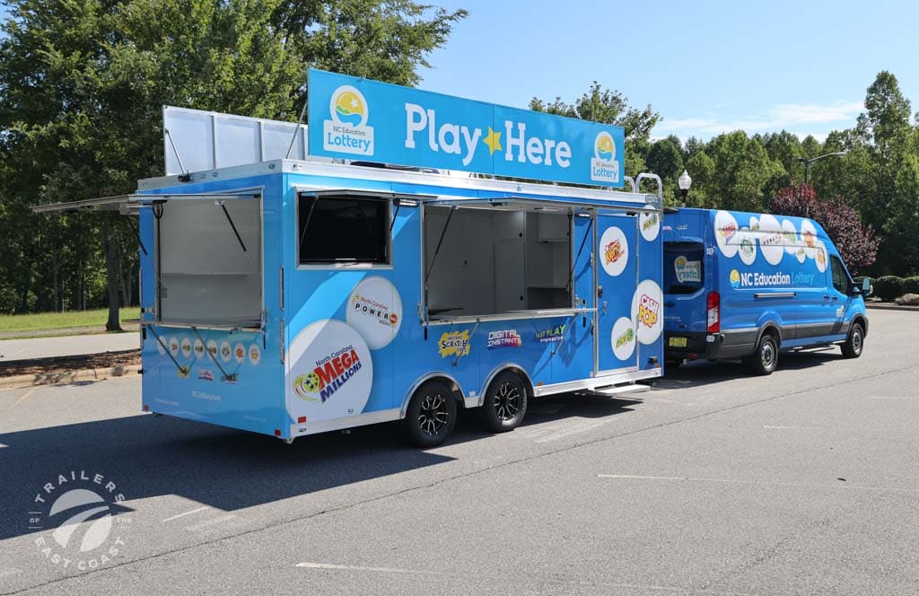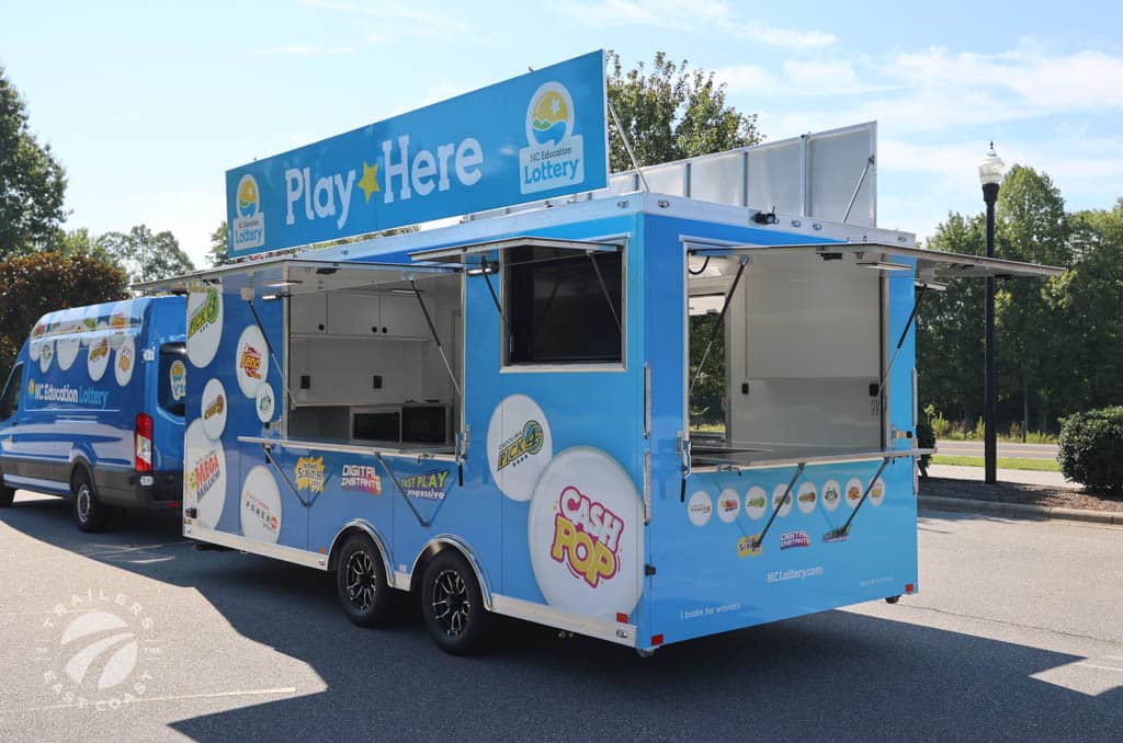 We worked with the team at the NC Education Lottery to build out this custom 8.5' x 20' ATC Pro 300V Vending trailer. They use this trailer for marketing outreach and it is also fully-equipped for mobile ticket vending at events throughout North Carolina.
