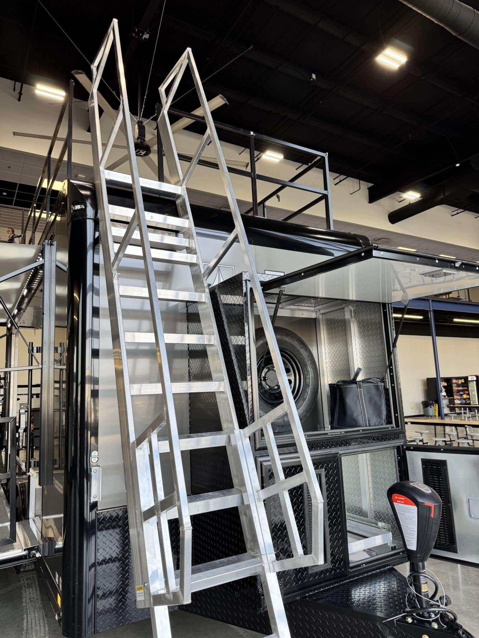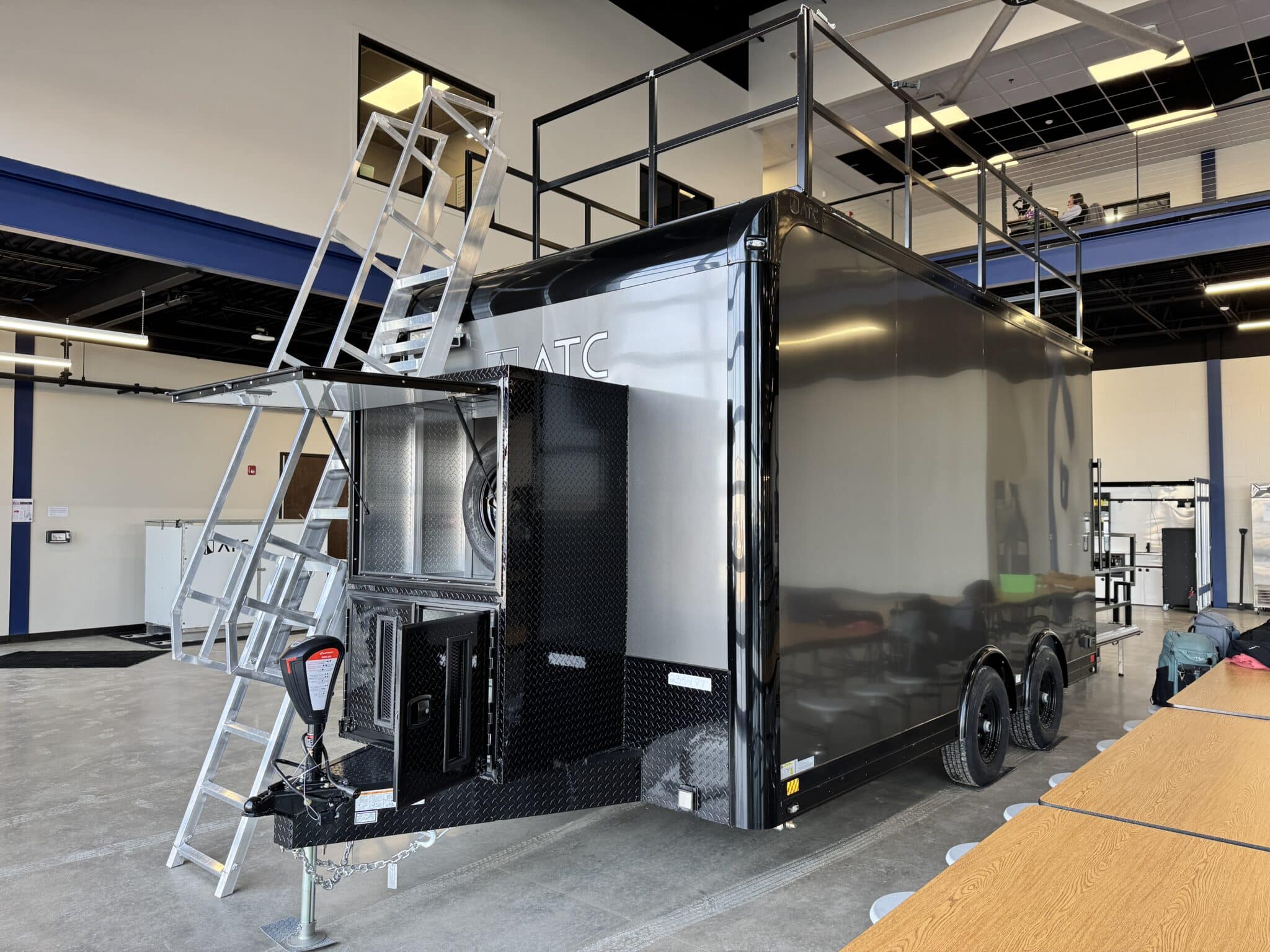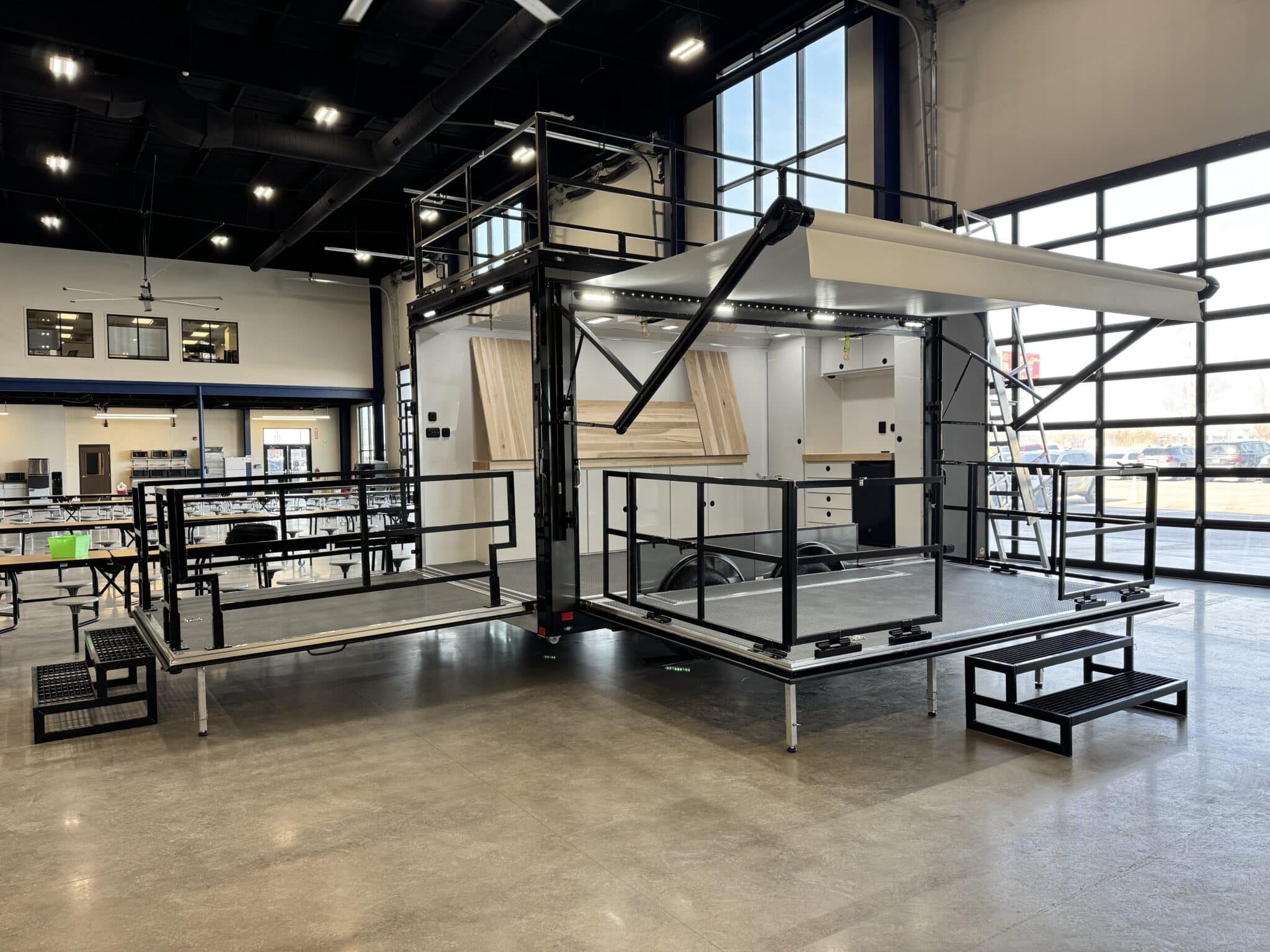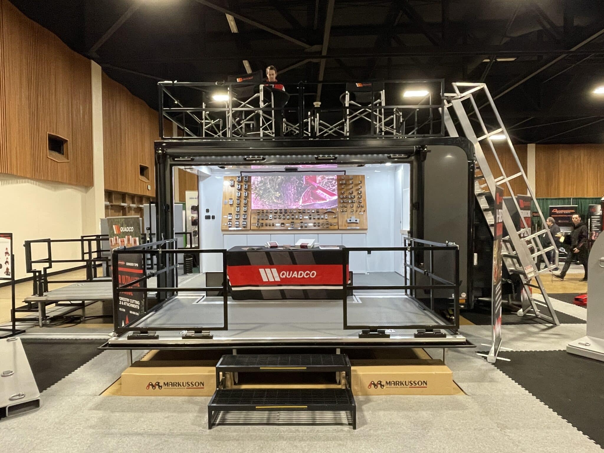 We worked with Quadco products to design this 8.5’ x 16’ ATC PRO 300S Stage/Display trailer to provide potential customers a hands-on look at their products. They display, demo and sell their products using this mobile showroom trailer.
