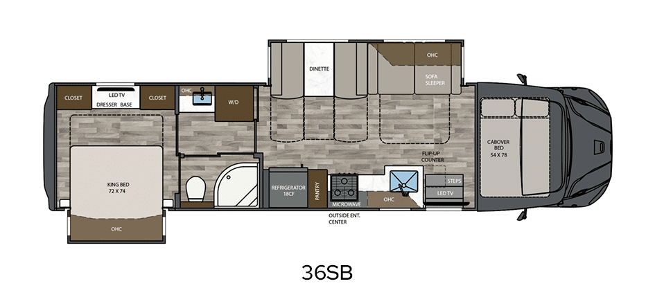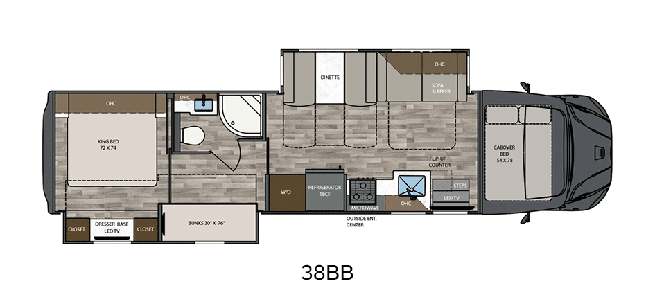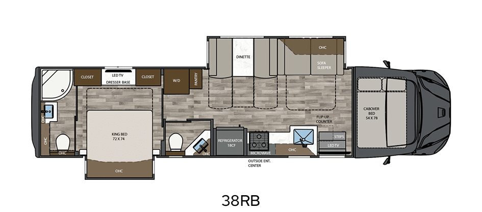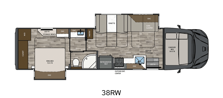 Renegade RV takes a proprietary approach to motorhome construction, going above and beyond to emphasize functionality in a high-end setting. Their Renegade Valencia model offers a smooth journey with excellent horsepower, high torque, and all the necessary amenities.