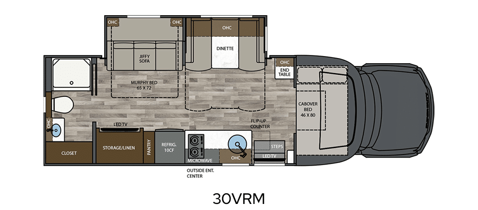 There is only a single Renegade Veracruz floorplan, but don’t underestimate it. This layout accounts for everything you need on the road, including multiple sleeping spaces, plenty of storage, and a comfortable dining area.