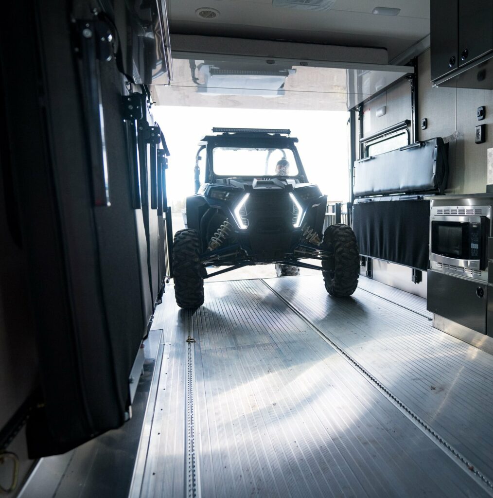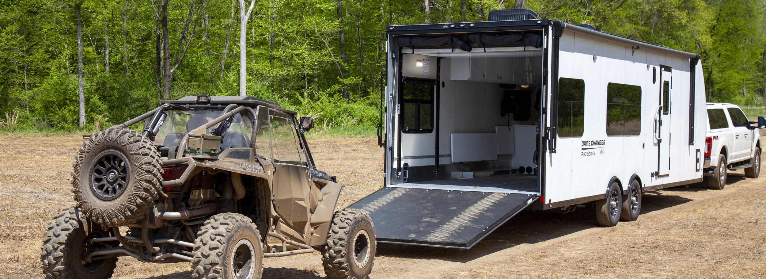 ATC’s Game Changer PRO Series toy hauler converts, conforms, and configures to your activities, your toys, and your lifestyle quickly and efficiently. Open up the rear area to accommodate your motorcycles, ATVs, and even a full-size vehicle. Or quickly transform that space into a large living area that you can configure with sofas, tables, dinettes, and beds. It’s entirely up to you and your plans. There’s just one thing to consider: What do you want to do today?