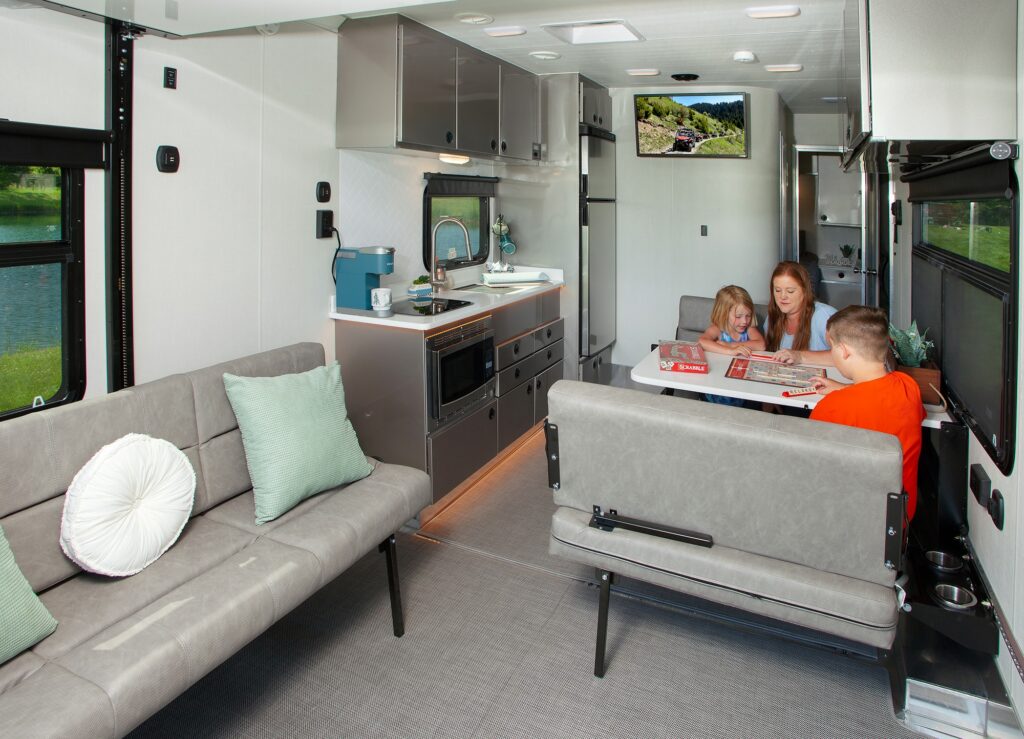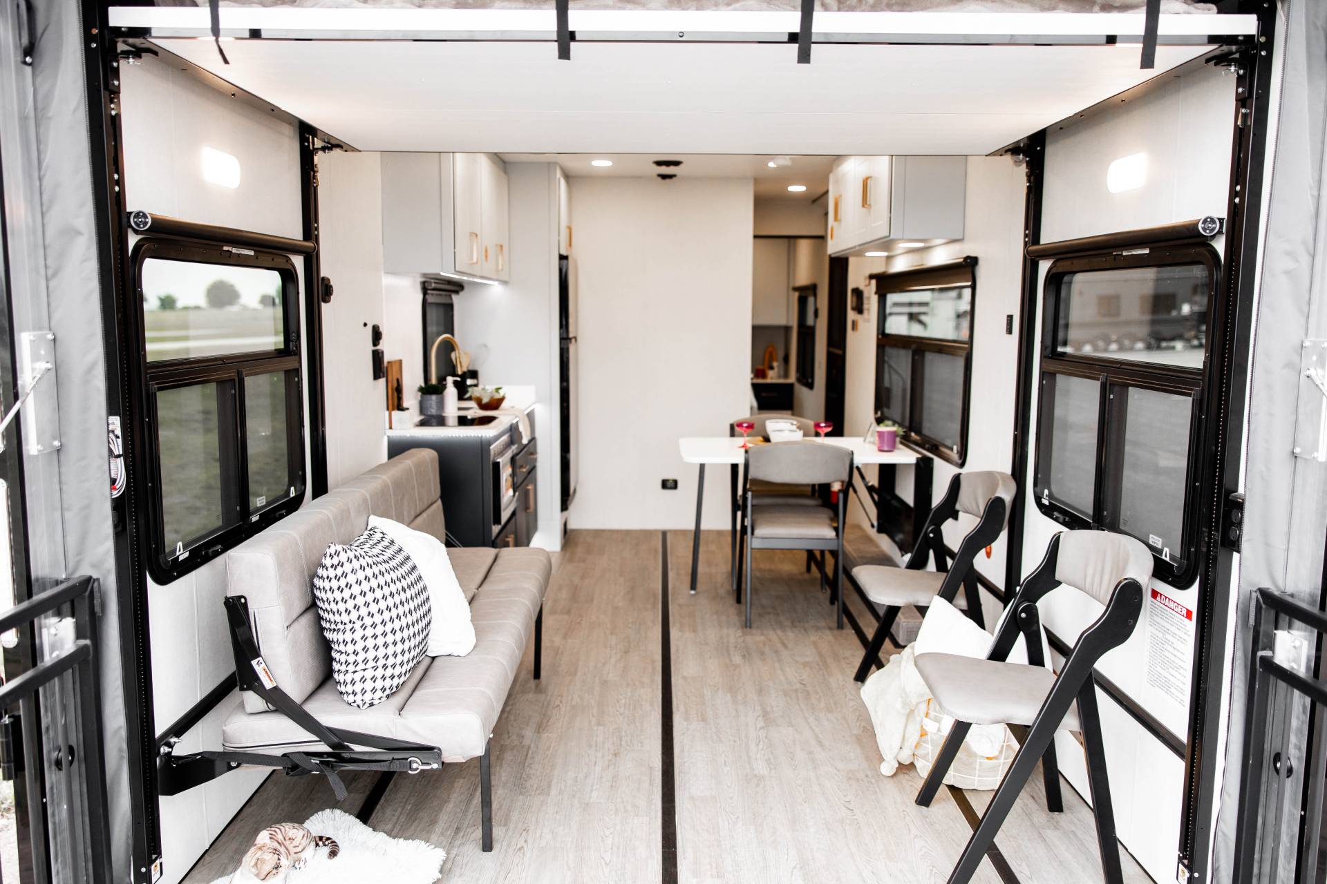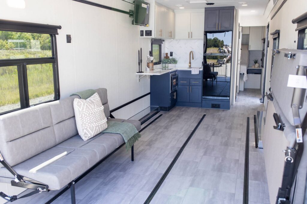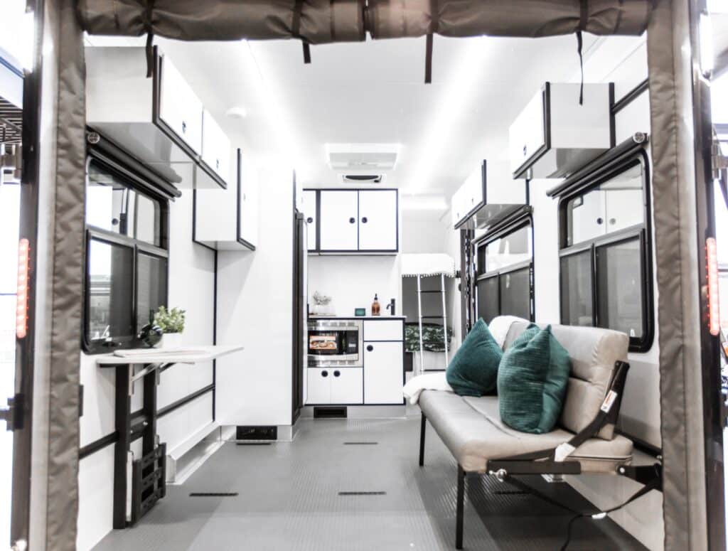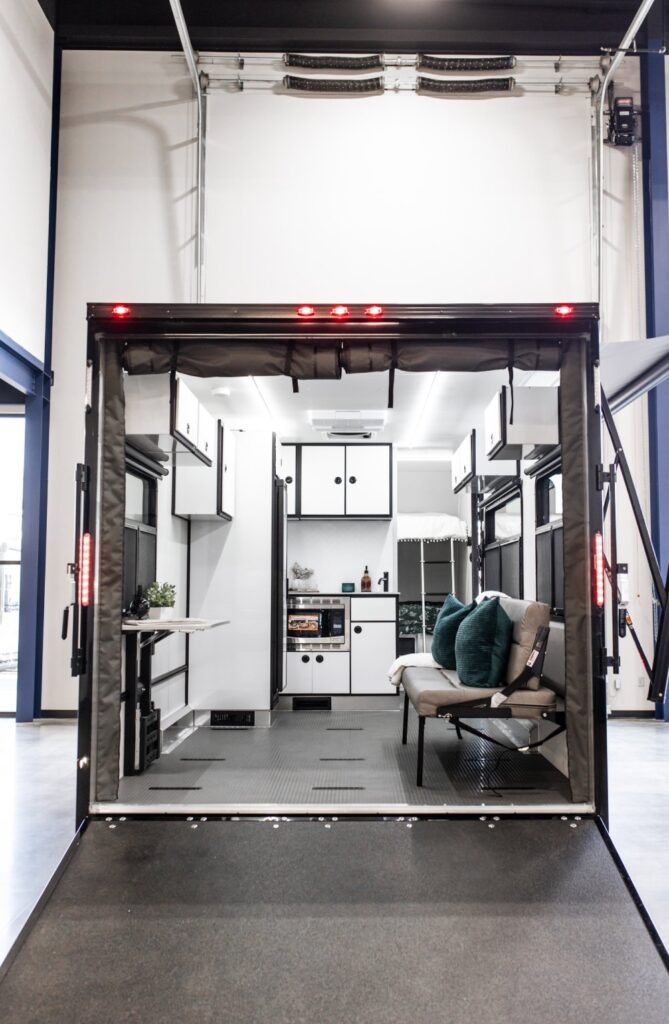 We enjoy making the trip as easy as possible for our customers with custom toy hauler options. Let our specialists help design a custom toy hauler to comfortably accommodate your toys AND your family and friends. Below is a sampling of some of our custom toy hauler work.