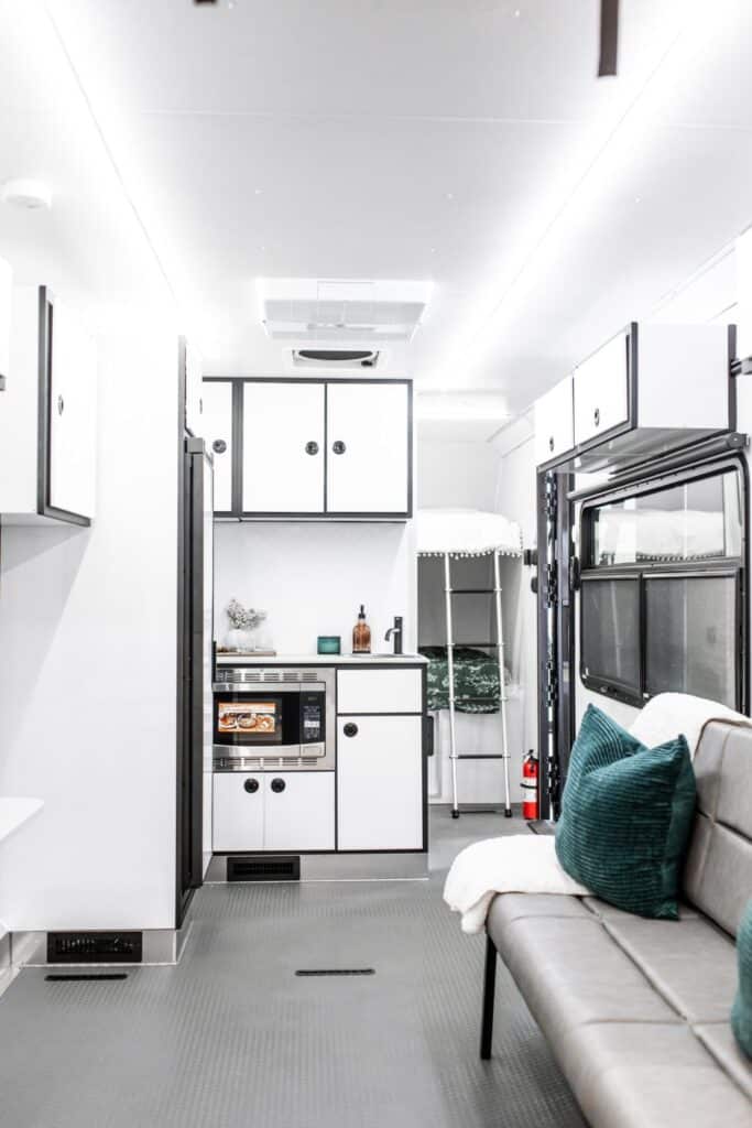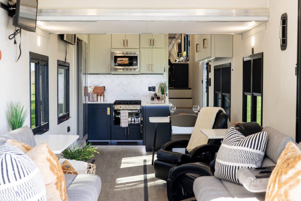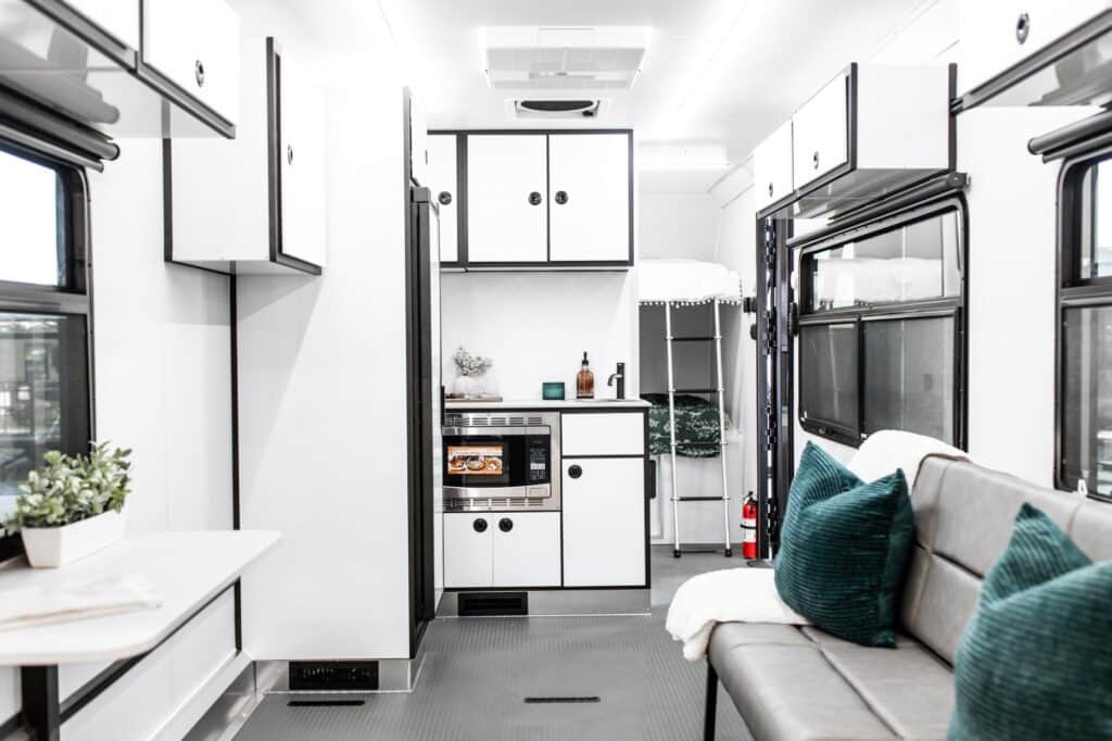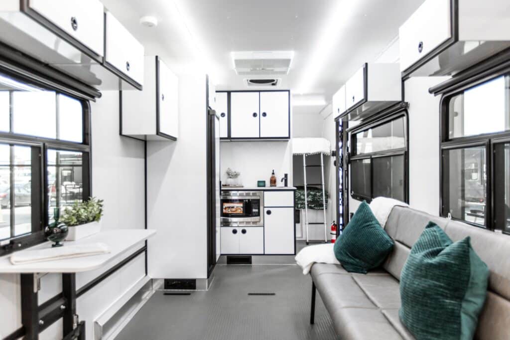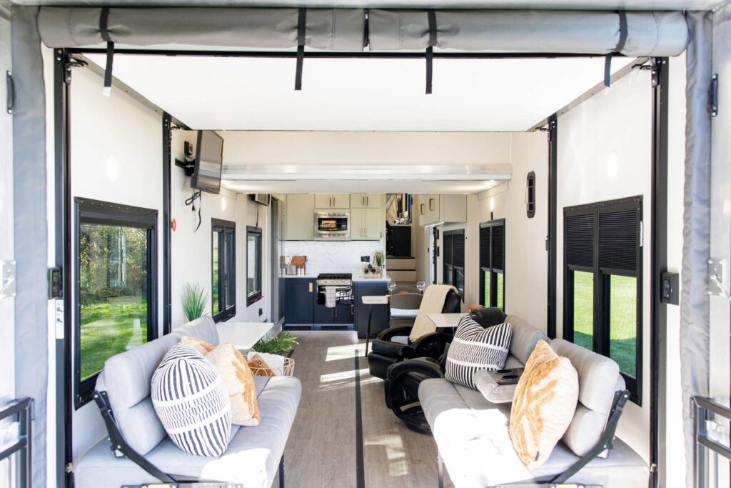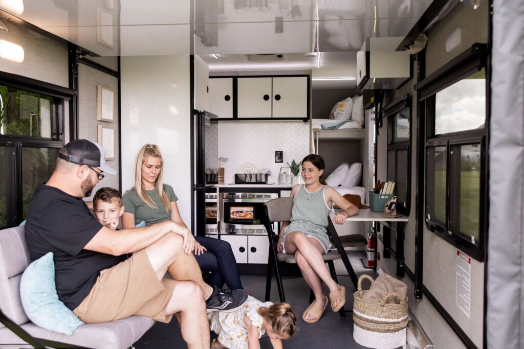 We enjoy making the trip as easy as possible for our customers with custom toy hauler options. Let our specialists help design a custom toy hauler to comfortably accommodate your toys AND your family and friends. Below is a sampling of some of our custom toy hauler work.